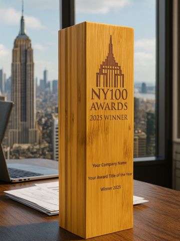 This eco-friendly 22cm x 7cm x 5cm (650g) bamboo trophy will include your company logo and award title.
