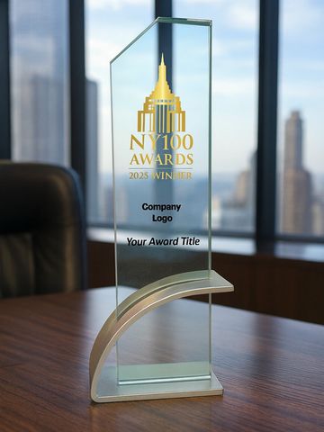 This 26cm x 10cm x 3.5cm (1.3kg) trophy will include your company logo and award title.