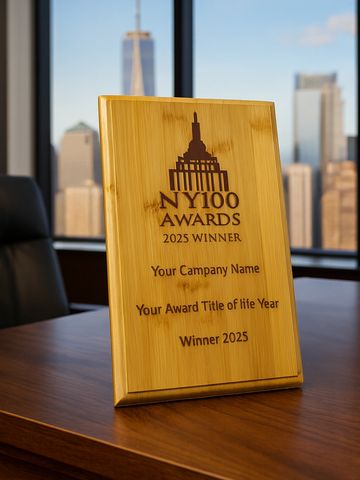 This eco-friendly 25cm x 20cm x 1cm (500g) bamboo plaque will include your company logo and award title.